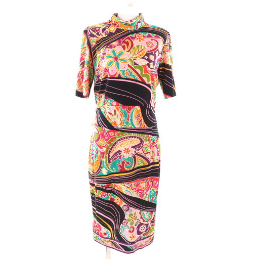 極美品★LEONARD FASHION レオナール ファッション 0130213 カンカン 花柄 長袖 ワンピース マルチ 36 日本製 正規品 レディース【中古】