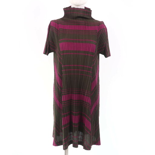 極美品▲PLEATS PLEASE プリーツプリーズ イッセイミヤケ PP63-JA412 長袖 ワンピース グリーン 3 日本製 正規品 レディース【中古】