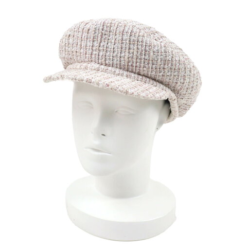 極美品☆CHANEL シャネル 19C コットン ココマーク ツイード ベレー帽 ホワイト ブラック M イタリア製 正規品 レディース【中古】