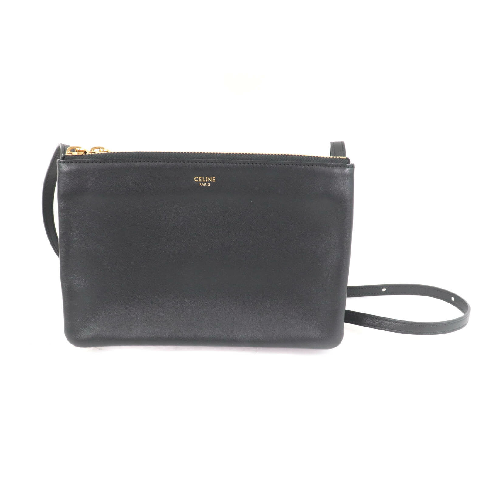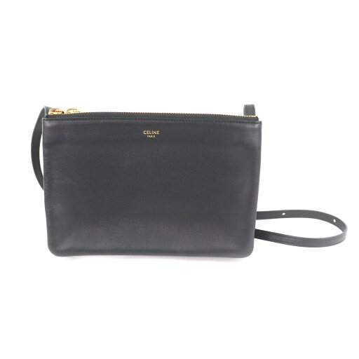 極美品■CELINE セリーヌ ショルダーバッグ クロスボディ 肩掛け 斜め掛け ポーチ トリオ ゴールド金具 革 レッド ユニセックス 男女兼用
