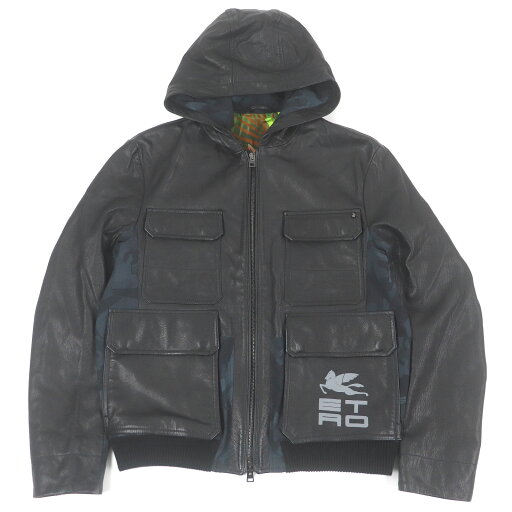 極美品□ETRO エトロ イールスキン 裏シルク混 中綿入り ボンバージャケット レザーブルゾン ボルドー XL イタリア製 正規品 メンズ【中古】