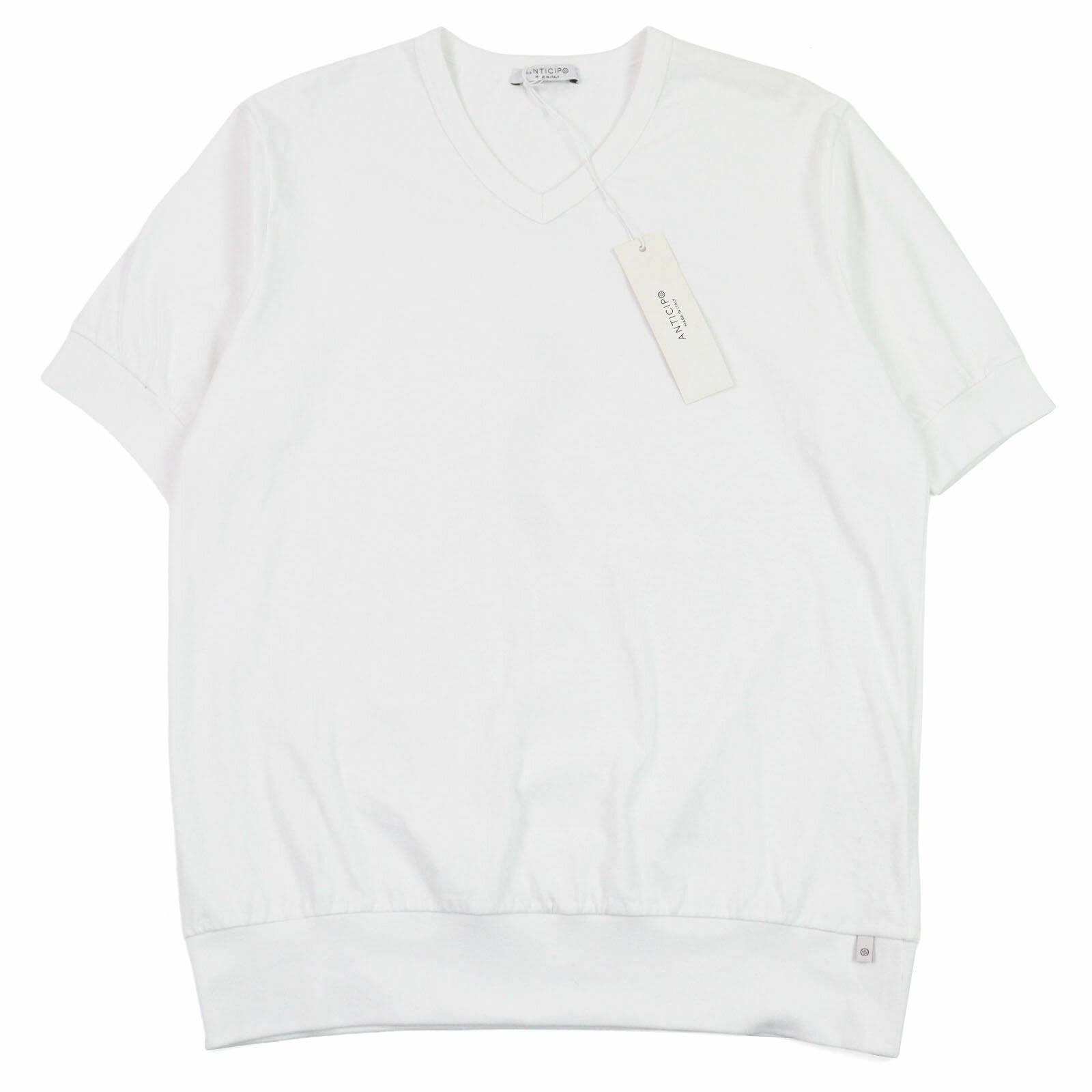 未使用品○ANTICIPO アンティーチポ INZOLIA インツォリア コットン100% ロゴタグ付き スムースコットン Vネック リブ切替 半袖Tシャツ ホワイト 42 イタリア製 正規品 メンズ