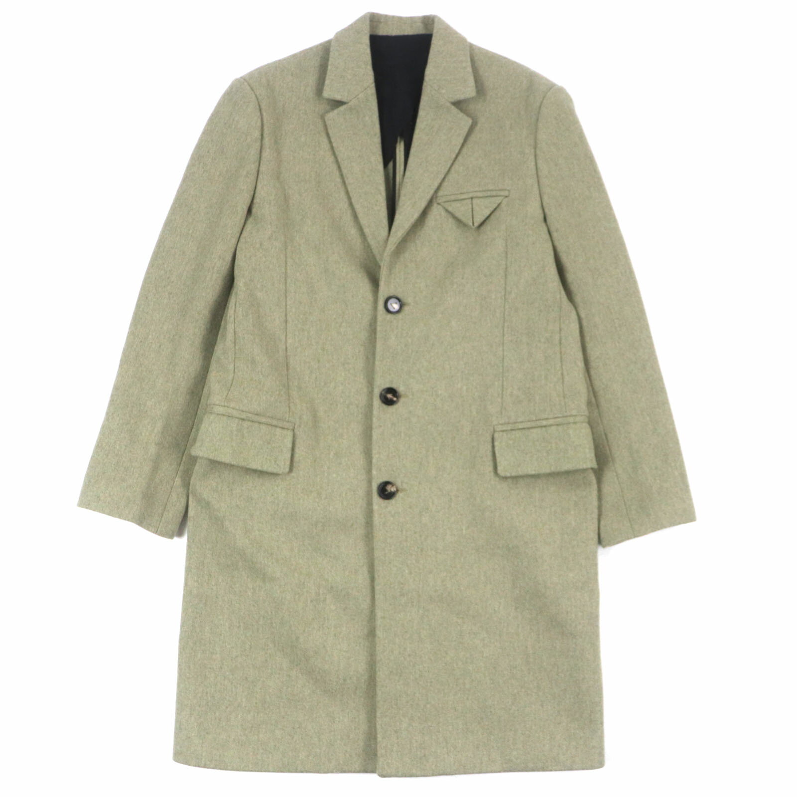 極美品▼BOTTEGAVENETA ボッテガヴェネタ 20AW 647389 ウール80% シングル チェスターコート グリーン系 46 イタリア製 正規品 メンズ【中古】