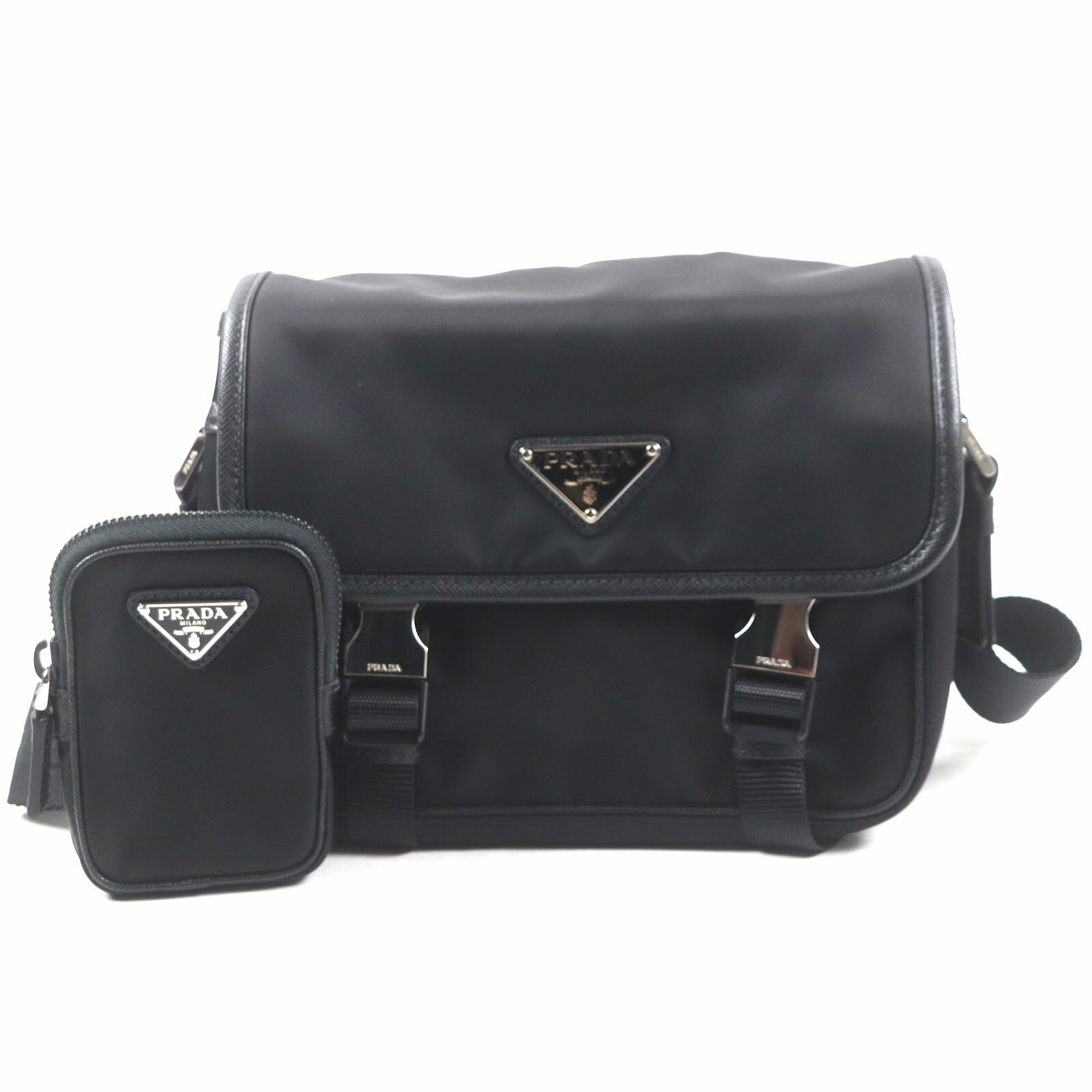 極美品 PRADA ショルダーバッグ 斜め掛け ブラック ナイロン サフィアーノ レザー 美品 プラダ レディース メンズ バッグ 正規品