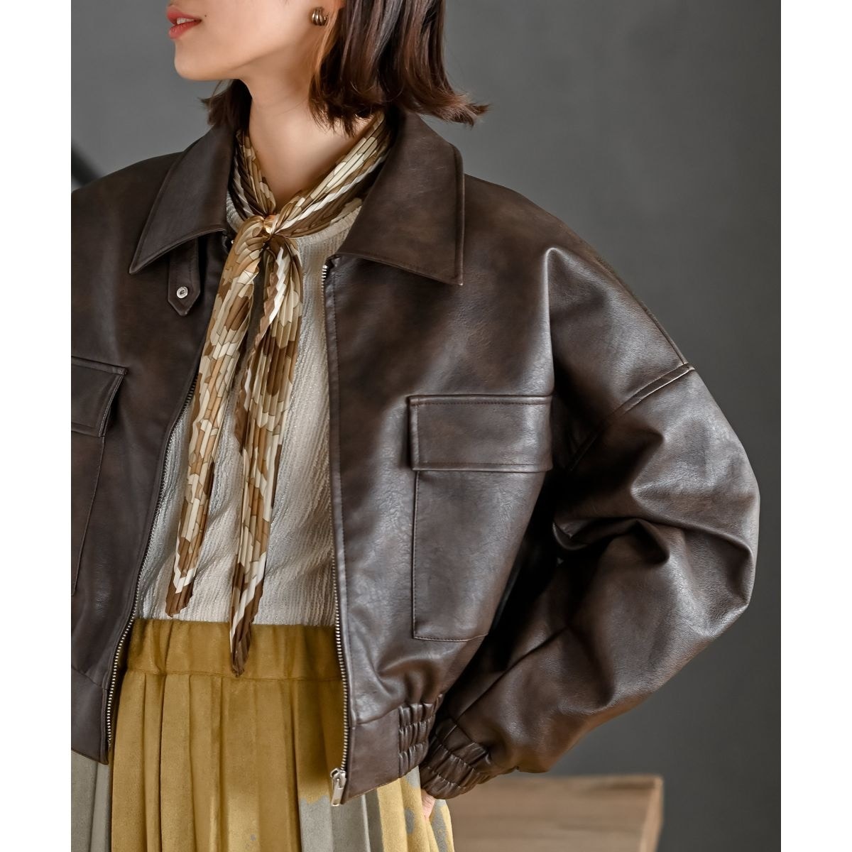 中綿入り ヴィンテージPU合皮ショート丈ブルゾン