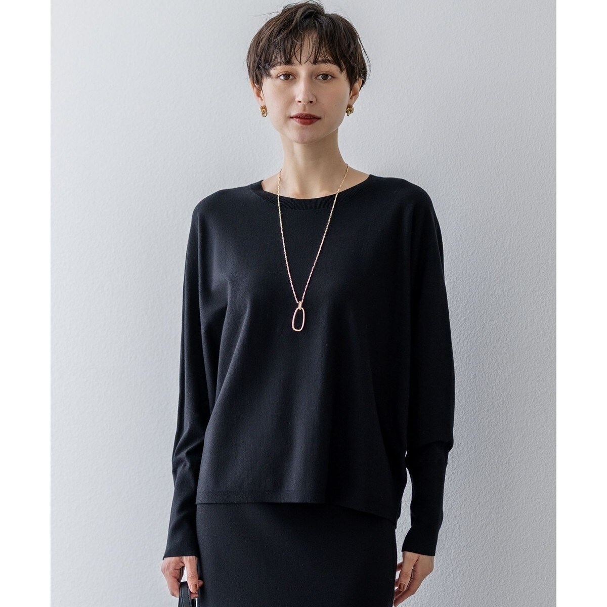 毎年ご好評いただいているドルマンスリーブプルオーバーです。前後差を少しつけることで、襟元を後ろに抜いて着用すると、より女性らしい柔らかな印象に仕上がります。袖口には長めのリブとスリット開きを配し、華奢な印象をプラス。ゆったりと快適な着心地でありながら、ラフになりすぎない品の良いシルエットで、オフィスからデイリーまでシーンレスに活躍します。パンツにもスカートにも合わせやすく、様々なコーディネートをお楽しみいただけるので、カラー違いでも集めたくなる一枚です。カラーは、洗練された印象のグレー(#004)、印象引き締まるブラック(#005)、パッと目を引くオレンジ(#020)、やわらかな印象のベージュ(#033)、フェミニンさのあるブラウン(#054)、アクセントになるブルー(#070)の6色展開です。