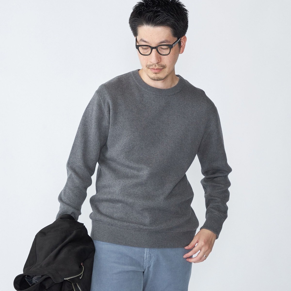 カシミヤブレンドの上品なクルーネックニット