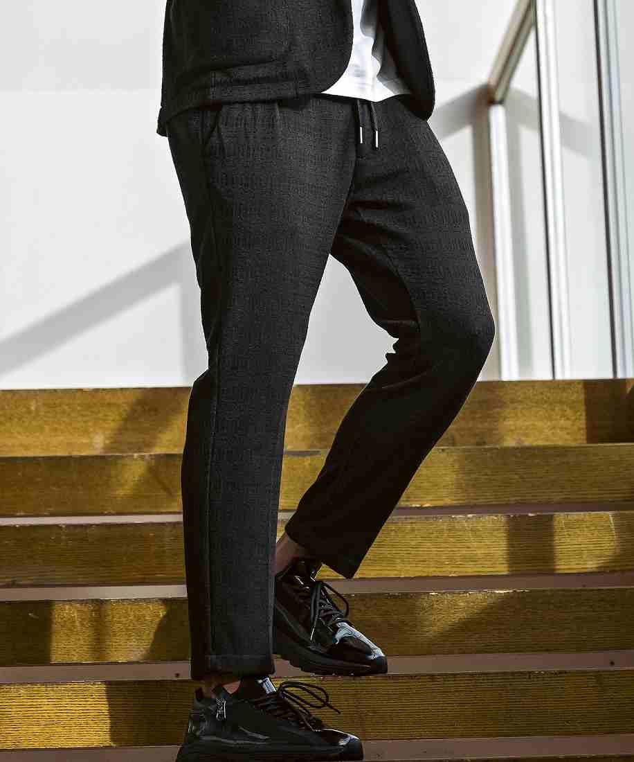 スラックスでありながらリラックス感が漂い、きちんと感と抜け感を絶妙なバランスで兼ね備えています。