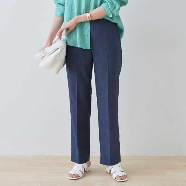 表情のある夏らしい素材を使用したストレートラインのパンツになります。