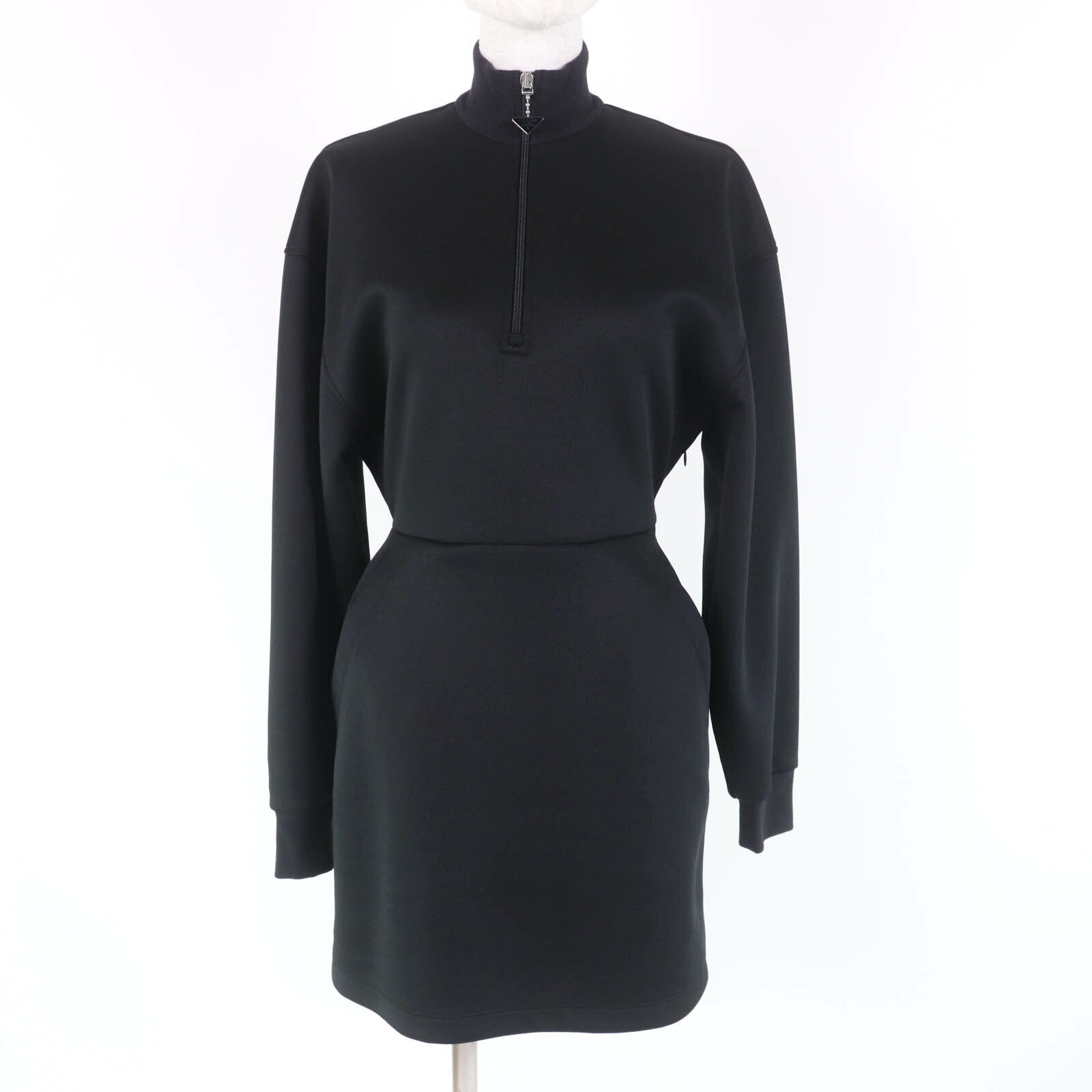 極美品☆PRADA プラダ P3309 レースコンビ Vネック 長袖 ワンピース ドレス ネイビー 40 イタリア製 正規品 レディース【中古】