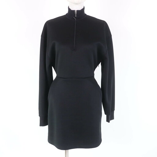 極美品☆PRADA プラダ コットン 美シルエット ベルト付 プリーツ 半袖 ワンピース ネイビー 40 正規品 レディース【中古】