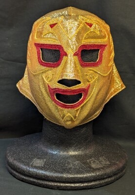 プロレスマスク アロンカナレス製【ドス・カラス(金ラメ×金・赤ラメフチ)】タグなし サイン入り
