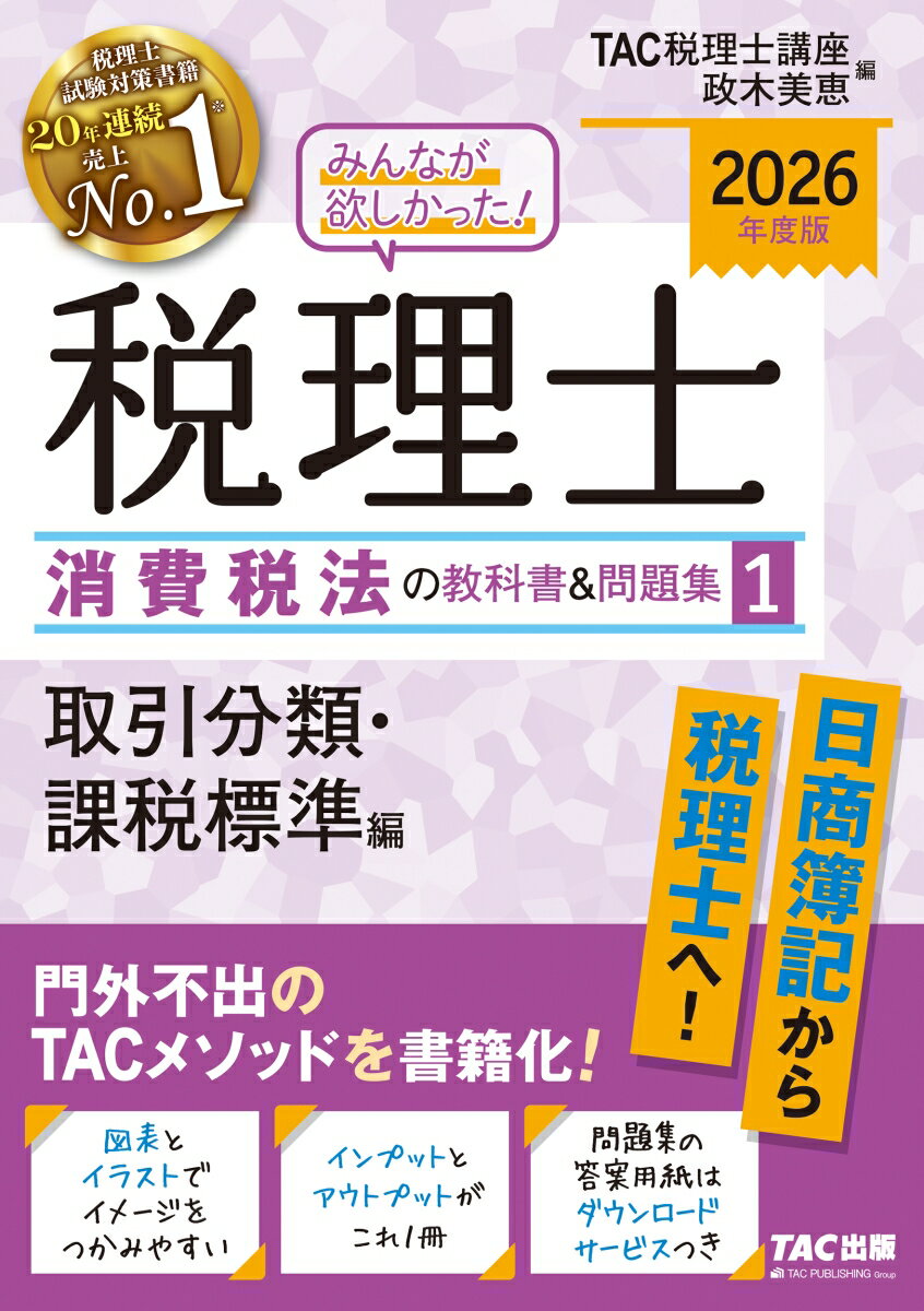 【ひとりで基礎学習を進められる教科書&問題集一体型書籍】「みんなが欲しかった!税理士」シリーズは、税理士試験対策のための教科書と問題集がセットになった、学習効率を重視したオールインワンパッケージです。教科書では、難解な内容をわかりやすい文と図解で学習し、例題によって本試験での出題イメージをつかむことができます。問題集では、基礎から応用へ段階を踏んで問題を解き、教科書の理解を実践につなげます。インプットとアウトプットを繰り返しながら、税理士消費税法の基礎を学ぶことができます。〈本書の特長〉1.ひとりで読み進めて学習できる教科書・巻頭に、「消費税法のガイダンス」として消費税法学習の全体像を掲載しています。・難解な内容をシンプルな文章で解説。Pointとして、理解を助ける図解とイラストを多用しています。・発展的な内容は+α、知っておきたい内容は参考として掲載しているので、重要度を意識しながら学習を進めることができます。・どのように出題されるのかがわかるよう、例題を適宜掲載しています。・個別理論問題対策に、重要条文を解説とともに掲載しています。2.解いて理解を深める問題集・教科書の中に問題集へのリンクを掲載し、教科書の進度に応じて適宜演習できるようにしています。・重要度を明記しており、優先順位の高い問題から解くことができます。・問題演習によって、教科書で学んだことの理解を深めつつ、解答力を身につけることができます。3.使いやすい分冊仕様・問題集と答案用紙が分冊になっていて、取り外して使うことができます。・答案用紙はPDFをWebサイトにて配布。ダウンロードして、何度も印刷して使うことができます。【改訂内容】消費税法のガイダンス、Ch1、Ch2、Ch5を改訂2025年7月現在の施行法令に準拠試験傾向等に合わせた内容の一部見直し