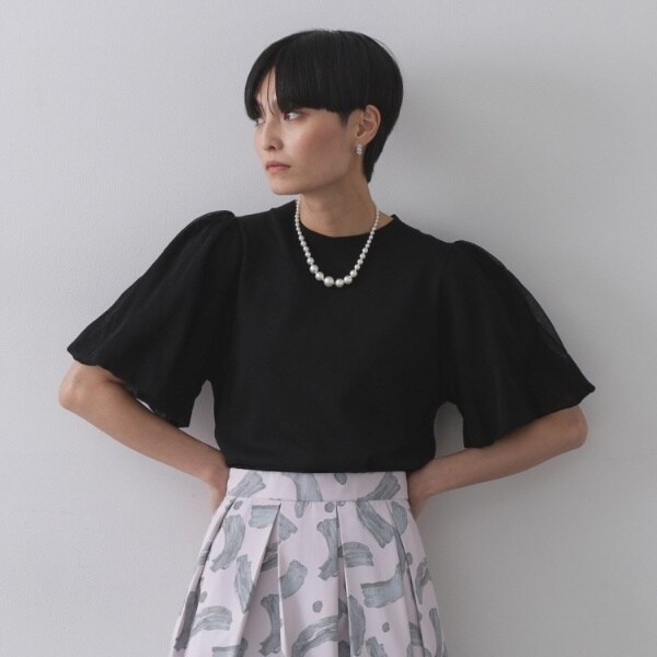 ・バルーンスリーブのボリューム感がポイントのニットプルオーバー。