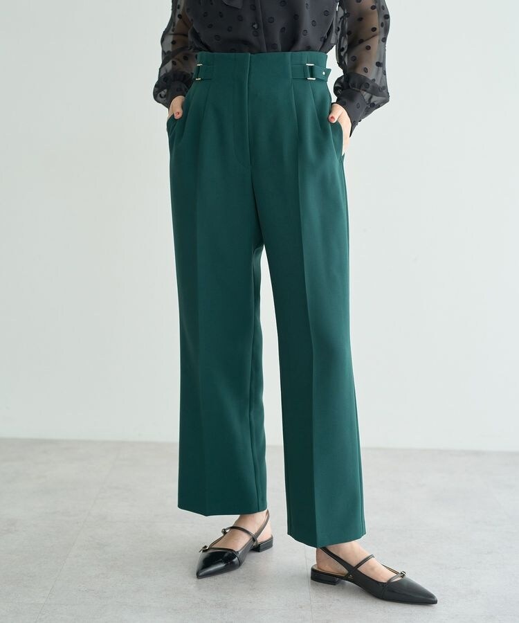 サイドベルトがスタイリングにアクセントをプラスするパンツ。