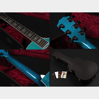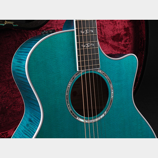 鮮やかで深みのある「アクアマリン」カラーがひときわ目を惹く、限定仕様のグランド・オーディトリアムモデル。繊細な木目が浮かぶフィギュアド・ビッグリーフ・メイプルのサイド&バックと、上質なシトカ・スプルーストップを組み合わせた、非常に完成度の高い一本です。