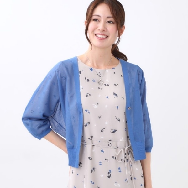 トレンド感たっぷりなシアー感のあるキレイな目面の編地を使用した軽やかなカーディガン。