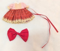 ドール衣装 リカママサイズ? タカラ製 ワンピース 赤系