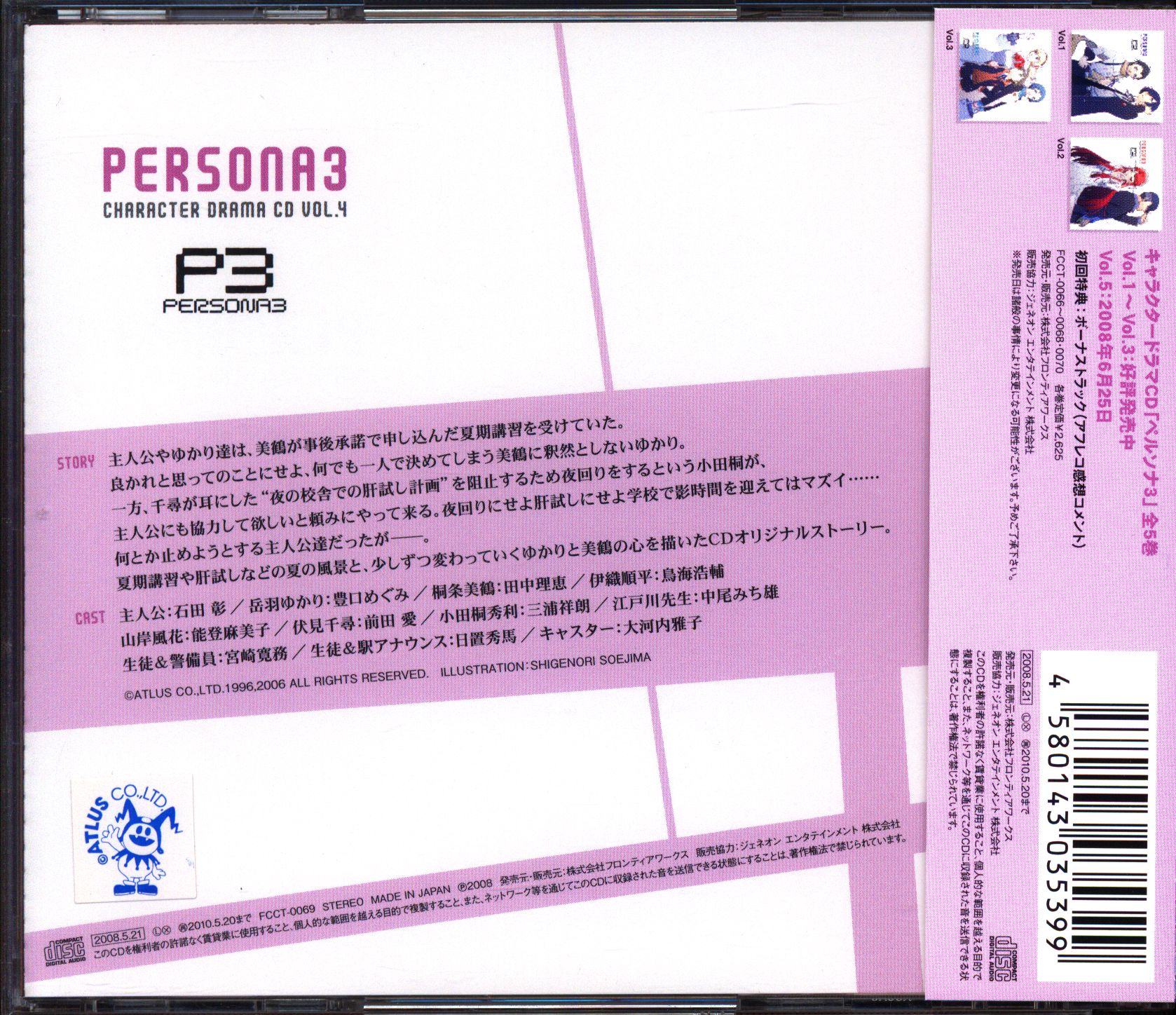 送料無料 キャラクタードラマCD ペルソナ3 vol.3 帯付き PERSONA3 CHARACTER DRAMA CD PSP PS2 プレイステーション2