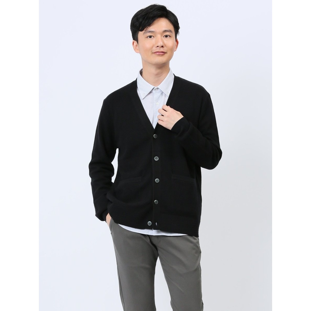 ウォッシャブル ウール混 Vネック ニットカーディガン