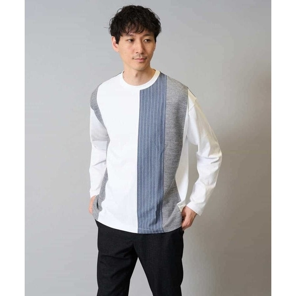 【洗濯機で洗える】ストライプ切替クルーネックカットソー(デザテクシリーズ)【春の新作】
