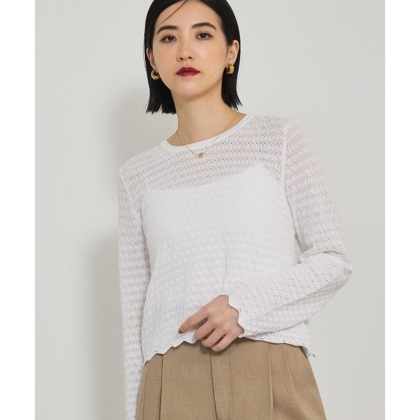透かし柄でスカラップレース風の編地が女性らしさを演出。