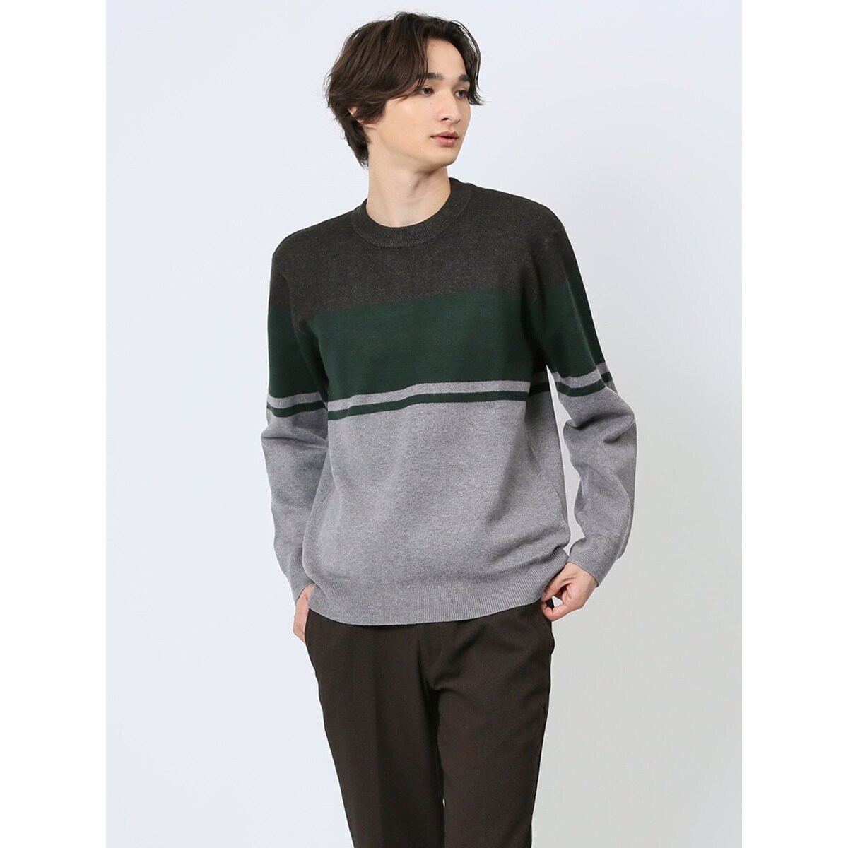 秋冬の大人の着こなしに欠かす事の出来ない、クルーネックのニットプルオーバーです。3段配色のパネルボーダーがポイント。秋はカットソーや布帛シャツとの重ね着に、冬はインナーとアウターの中間着として防寒対策にマストなアイテムです。