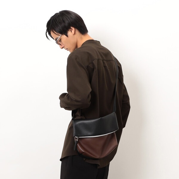 程良いシボ感が特長の合成皮革で仕上げたショルダーバッグ。