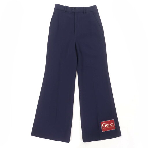 極美品●GUCCI グッチ 690474 グッチラベルトラウザーパンツ ロゴワッペン付き スラックス ブラウン 44 イタリア製 正規品 メンズ【中古】