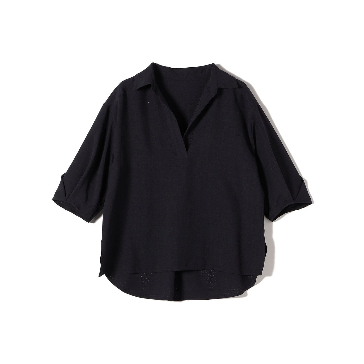 パンチングが涼し気なスキッパーシャツ。