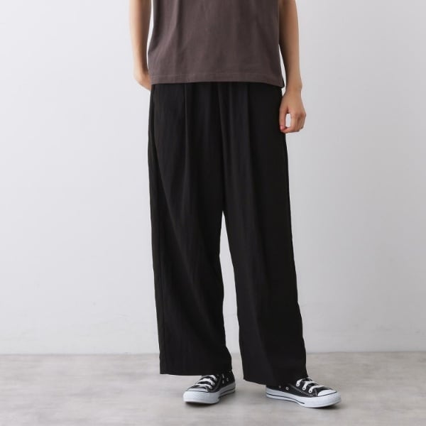 ウエストゴムのイージーな穿き心地と接触冷感素材で、暑い時期も快適に過ごせるパンツです。