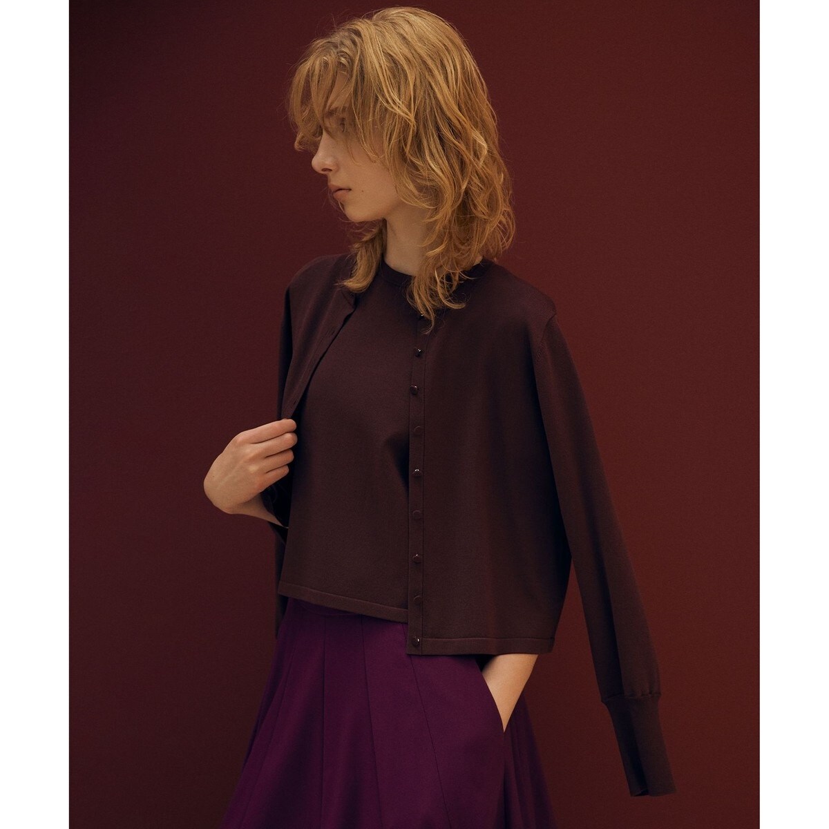 同素材のカーディガンとのアンサンブル着用もおすすめ!