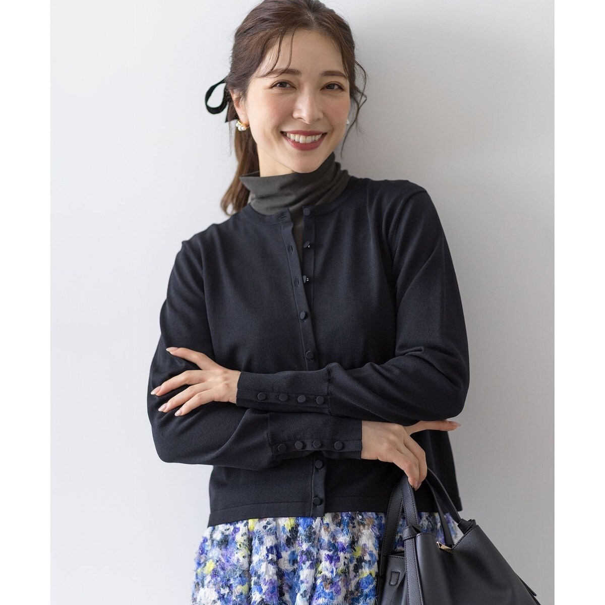 \組曲定番ドライタッチのきれいめ素材/クルミボタンが上品なNEWシルエットカーディガン