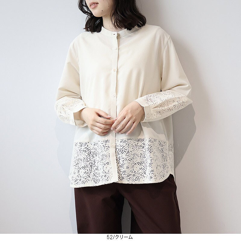 【大きいサイズ】レース レイヤード バンドカラーブラウス