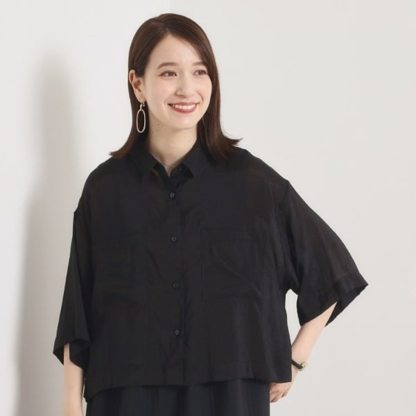リネンブレンド 短丈 シアー シャツ ブラウス