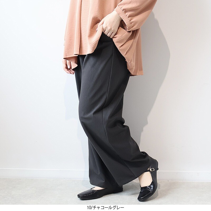 伸縮性 ワイドパンツ チャコールグレー レディース 大きいサイズ 3L