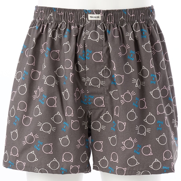 猫をかたどったサークルモチーフを幾何柄風にアレンジした可愛いデザインのトランクス。9枚剥ぎのおしりにゆとりを持たせた立体的なパターンを採用。足口スリット入りで余計な突っ張り感を軽減。ルームウェアとして女性にもおすすめです。