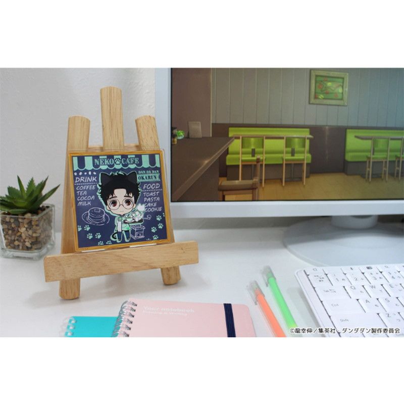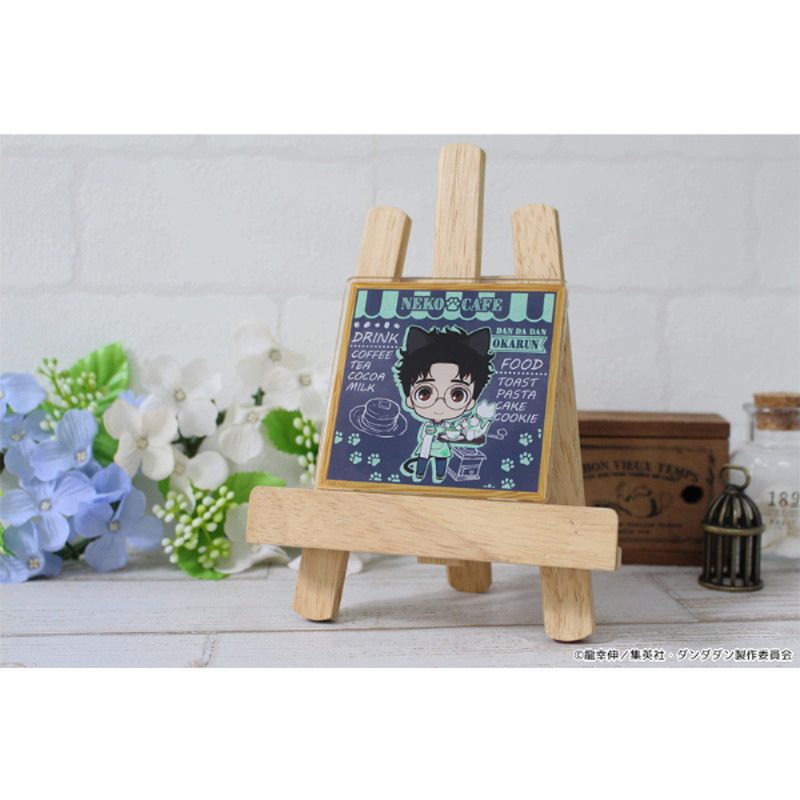モモ/オカルン/星子/アイラ/ジジ/ターボババア(招き猫)の猫カフェをイメージした可愛らしい描き起こしデフォルメイラストを使用しました。カフェのメニューボードをイメージしたおしゃれなデザインでブレイクタイムも楽しくなりそうですね!