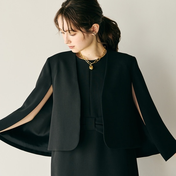 ・ジャケットを肩掛けしているような変形デザインのケープ風ジャケット。