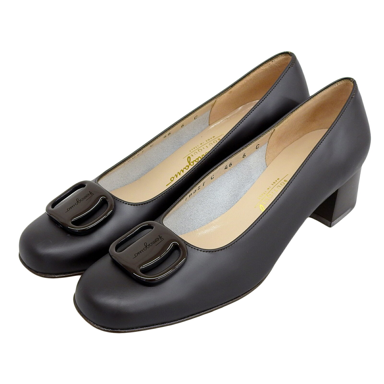 極美品☆Salvatore Ferragamo サルヴァトーレフェラガモ ガンチーニ金具付 レザー パンプス ブラック 8 イタリア製 レディース【中古】