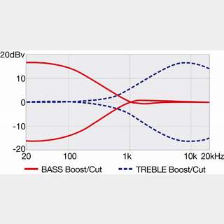 2つのスタック・ノブのうち、ボディ・エンド側がHigh(上段)/Low(下段)のブースト/カットをコントロールするシンプルな2バンドのEQです。