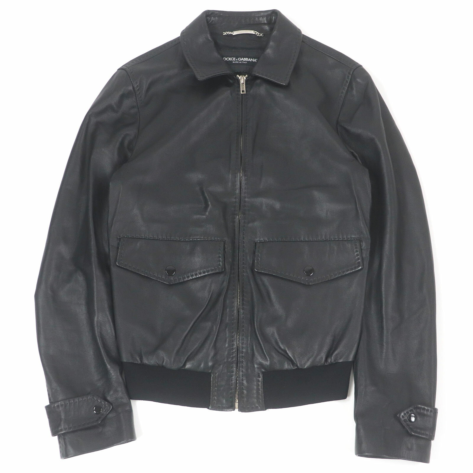 美品□DOLCE&GABBANA ドルチェ&ガッバーナ ラムスキン 黒タグ エルボーパッチ レザージャケット ブラック 44 イタリア製 正規品 メンズ【中古】
