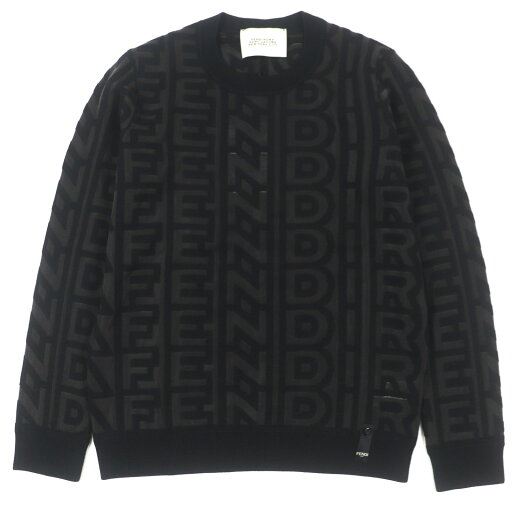 未使用品□FENDI×MARC JACOBS フェンディ×マークジェイコブス 2022年製 FZX034 バージンウール100% クルーネック セーター ロゴニット ブラック 52 イタリア製 正規品 メンズ【中古】