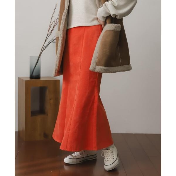 秋らしさの感じるコーデュロイスカート