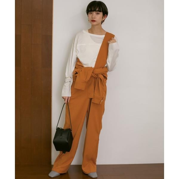 サラッと着るだけでこなれコーデが決まる、存在感抜群のオールインワン。今年らしい細身のシルエットを採用することで女性らしさを引き上げました。裾にはファスナーが付いていて、下げるとワイドパンツに変化するのも見逃せないポイント。また、内側には肩紐が付いているのでワンショルダーのオールインワンとしても着て頂ける着回し力抜群のアイテム。スニーカーなどでカジュアルに合わせるだけでなく、ショートブーツやヒールで格好良く着こなすのもおすすめ。