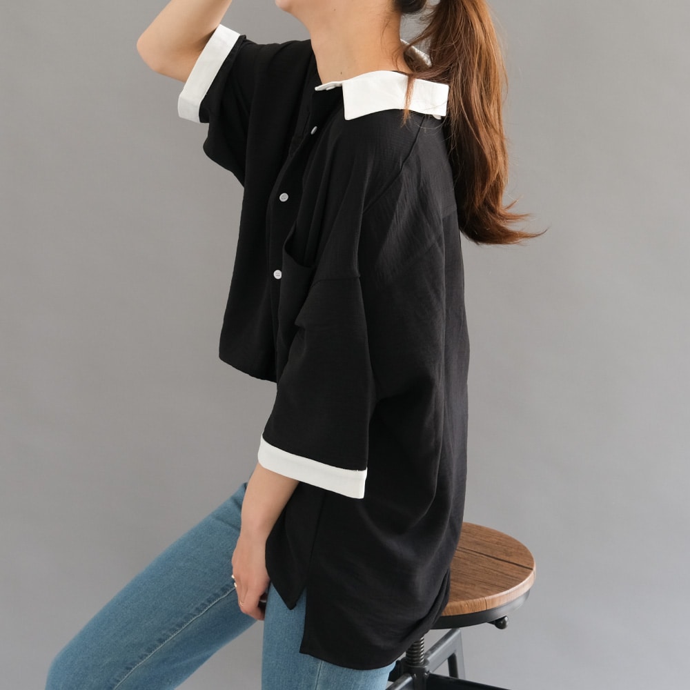 【classicalelf】バイカラークレリックBIGシルエットシャツ