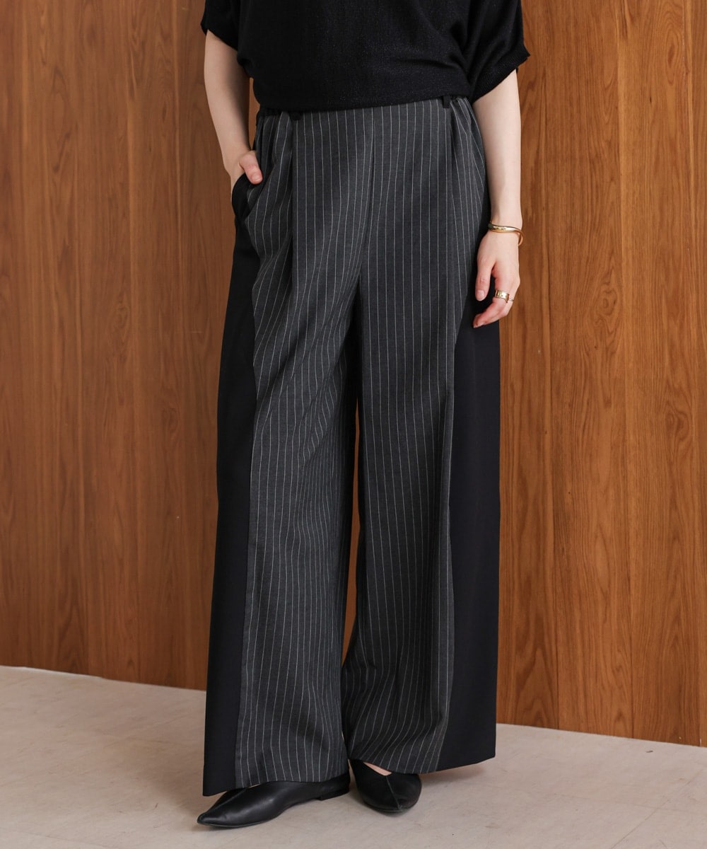 配色ベルトワイドスラックスパンツ【セットアップ対応】