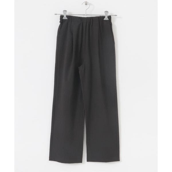 イージーケアなポリエステルサッカー素材のイージーパンツはシンプルながらも凸凹の表面が表情豊かに。