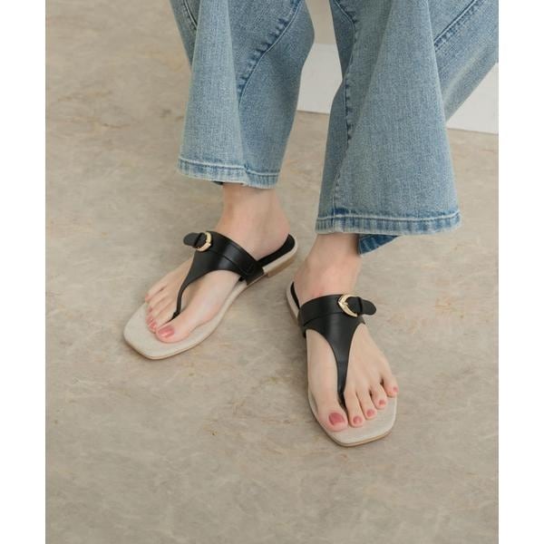 ナチュラルなキャンバス地とレザーを組み合わせたトングサンダル。