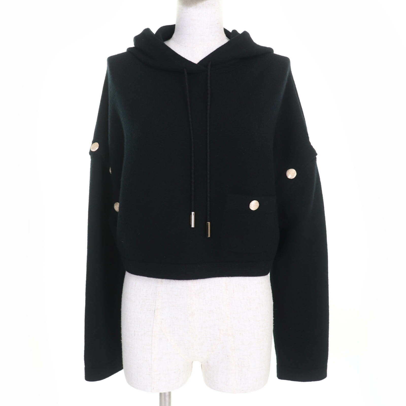 極美品☆HERMES エルメス 23SS 3E0315DJ 膝丈 フレアスカート デザインスカート ブラック 36 フランス製 正規品 レディース【中古】